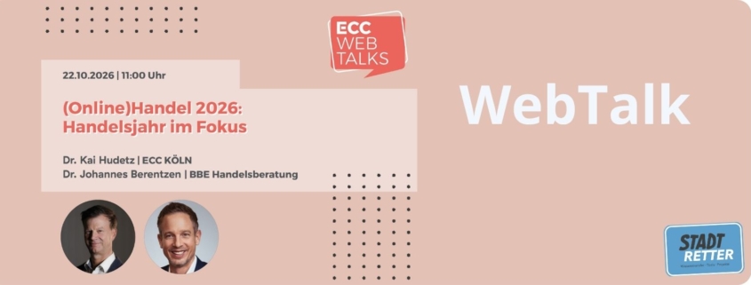Die ECC Köln WebTalks laden zu einem spannenden Online-Infotermin ein: Kurz vor den Aktionswochen und dem Weihnachtsgeschäft werden die aktuellen Entwicklungen in der Handelslandschaft in den Fokus genommen.